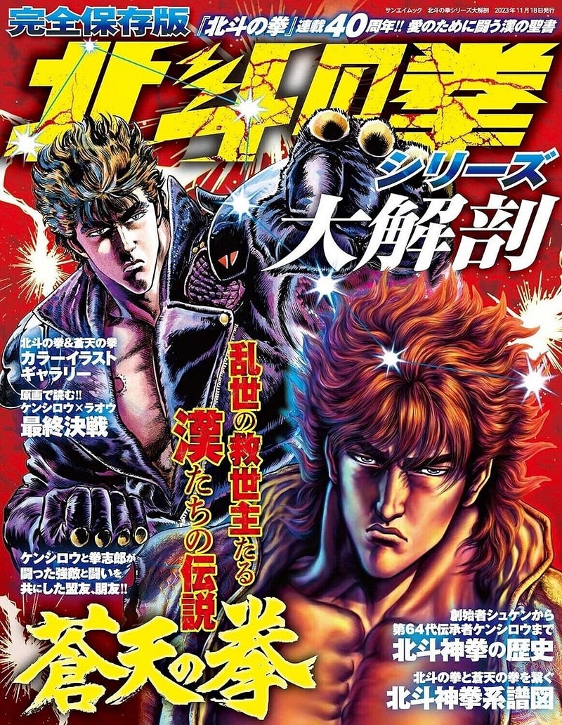 FIST OF THE NORTH STAR - WRITTEN BY BURONSON, ART BY TETSUO HARA - 1983-1988 - I was always weirded out by this comic - specifically the 12 foot tall guys with baby faces & steroid physiques. This was even more refined & concentrated in Jo Jo’s Bizarre Adventure by Hirohiko Araki - then at some point I just accepted the premise & got into it - when I was able to drop my own desire for things to “make sense” this comic very clearly became this mythological treatise on the eternal conflict of the mighty vs. the weak & the stranger who comes into the conflict & champions the weak but is even stronger than the predators. It’s still a weird aesthetic, the size differences in characters is strange, but it’s like the Bible or Medieval art - the important things are big & the unimportant things are small.