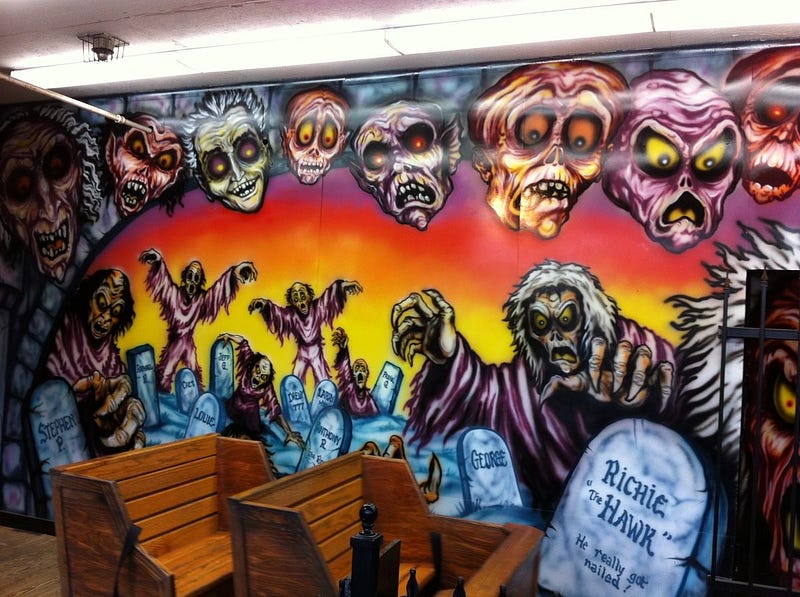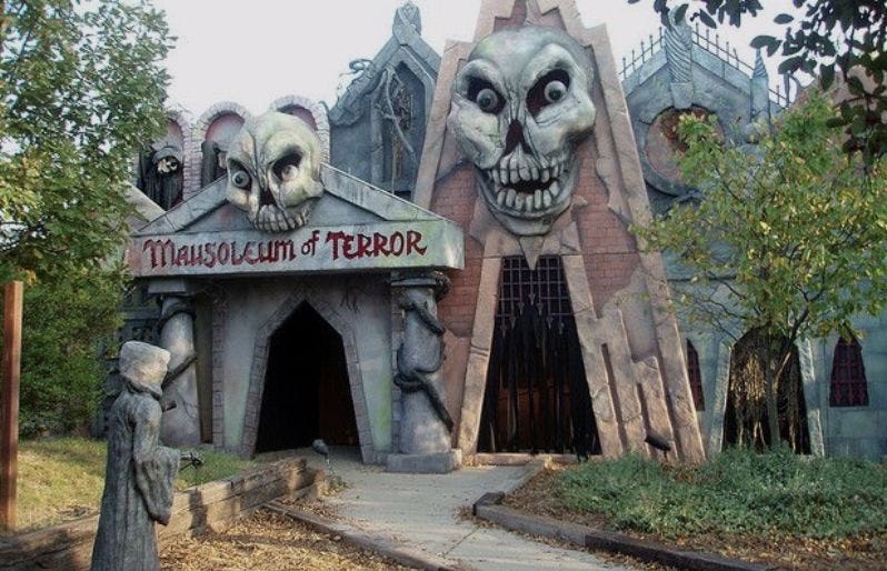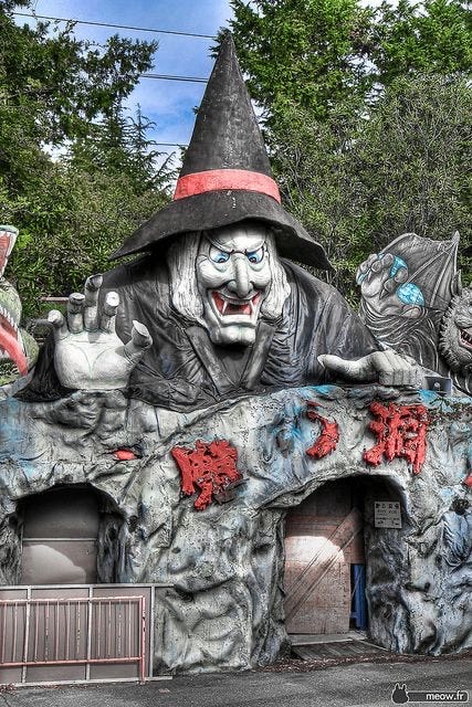 DARK RIDES - I’m particularly interested in the imagery that is unprocessed by boardrooms & concerned citizens. I am excited by the raw expression of the naive artist who is trying to connect with the people in the ways that seem most obvious. In the case of carnival dark rides - it’s the unrefined vision of “what is scary “. The older versions of this macabre mentality are clearer on the theme - partially because our country is confused right now about what is & what isn’t. But still, there’s a common language that’s distinct that isn’t the beige nightmare of McDonalds! A clue to finding it is in these old dark rides.