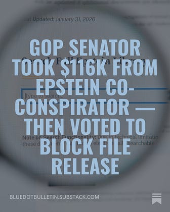 He took $116,000 from one of Jeffrey Epstein’s co-conspirators. Then he voted to keep the Epstein files secret.