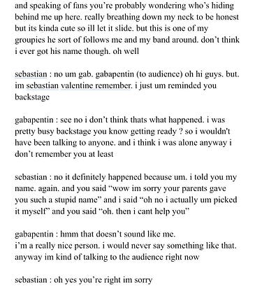 my substack is so dead … i have been writing lately i swear it’s just that its for my puppet act so i cant share it all yet until after the performance. but here is a little bit 😇