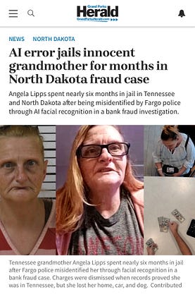 Hopefully Angela gets a big fat settlement from the police department and the AI company.