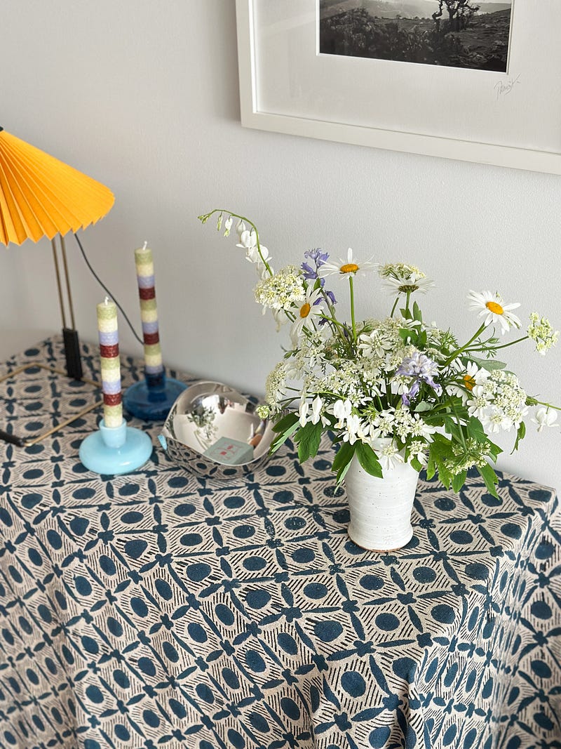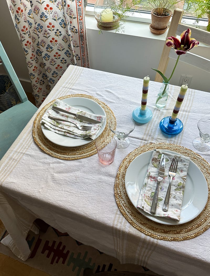 Here’s a pair of blue candle holders styled three ways in the past week.