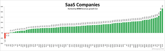 One look at NTM revenue growth rankings shows how uneven the landscape has become. The right tail matters most. Capital flows toward the extremes.