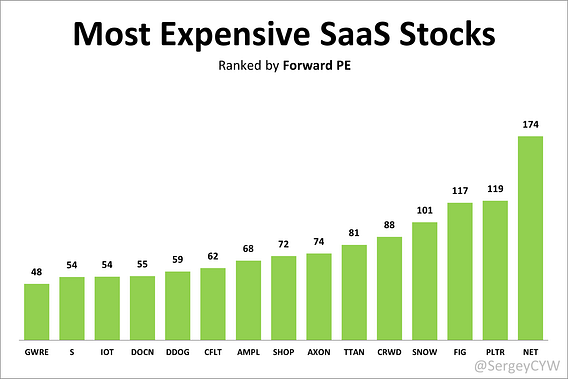 Most Expensive SaaS Stocks where the market prices strong future growth