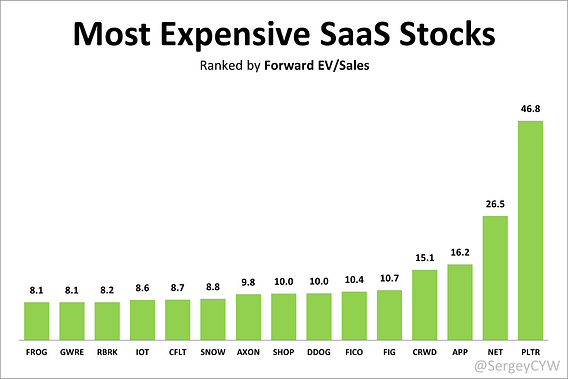 Most expensive SaaS stocks (Forward EV/Sales) 👇