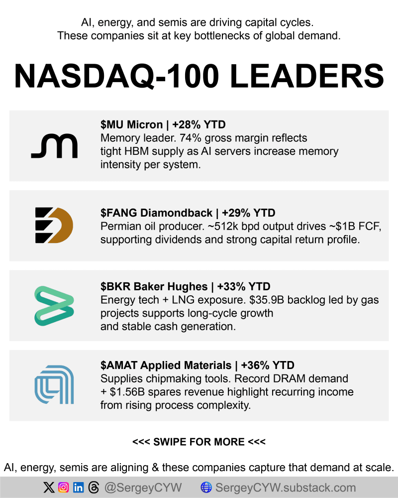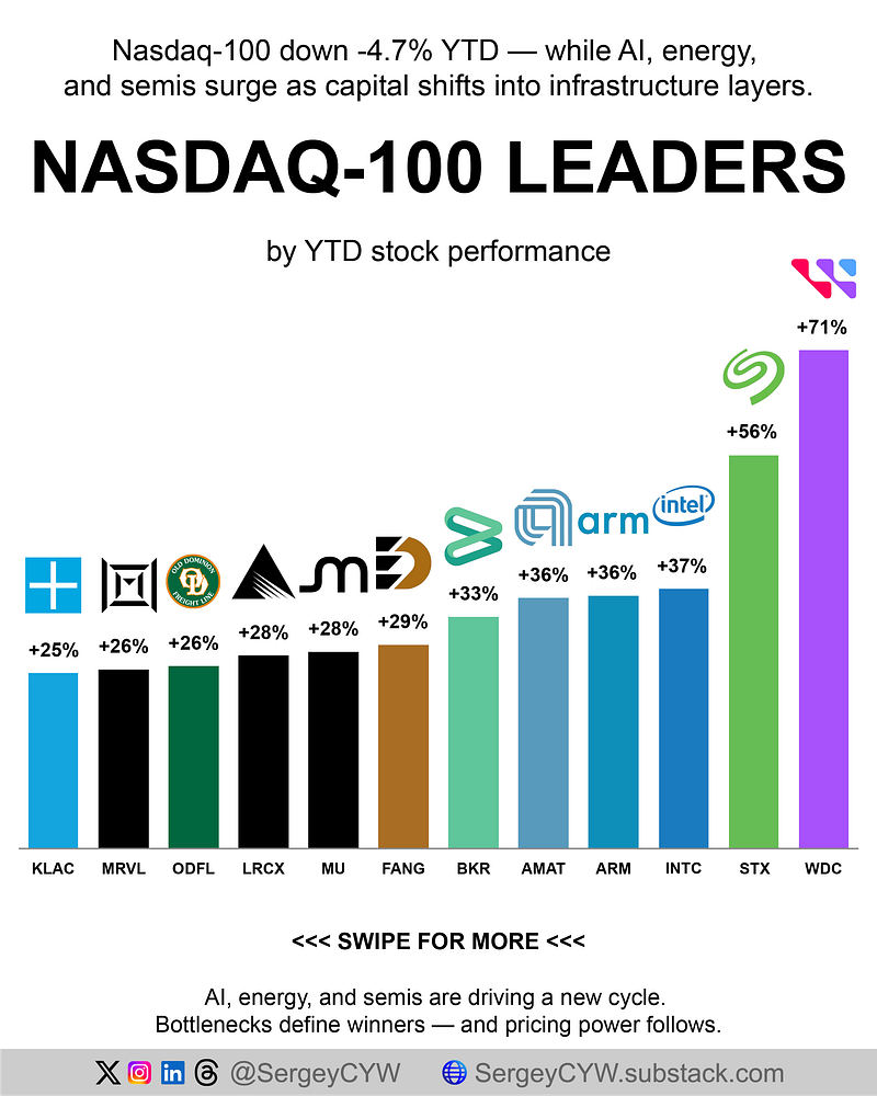 Nasdaq-100 down -4.7% YTD - AI, energy, and semis stocks are driving a new cycle.