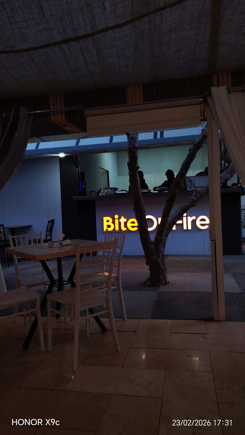 We sat in the restaurant exchanging conversations.