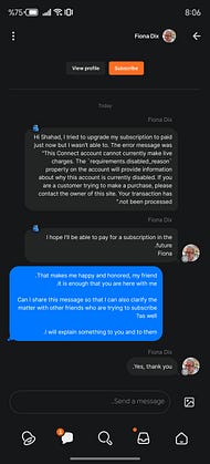 I know that the issue with paid subscriptions on my account is still unresolved, because they cannot be activated in my country. One of my close friends tried to help me with this last week, but unfortunately even the Stripe platform, which handles paid subscriptions, is not available in his country either.