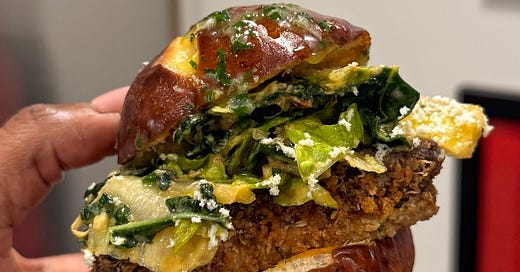 Game day sliders with chili crisp caesar dressing and crispy parmesan tofu 🤤 (vegan and vegetarian friendly)