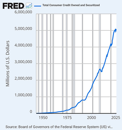 Since 2020, consumer credit has exploded by nearly $1 trillion. Not for luxuries. For survival. For groceries. For gas. For the gap between what wages pay and what life costs.