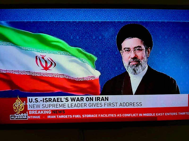 Fourteen days after the strike that killed his father, his mother Mansoureh, his wife Zahra, and one of his sons. Six days after an Assembly of Experts that Reuters reports the IRGC pressured into appointing him unanimously. After zero appearances and one life-size cardboard cutout held upright by a handler at his own allegiance rally. After the New York Times confirmed his legs were injured in the same blast, CNN reported a fractured foot, bruising around his left eye, and lacerations across his face. After Iran’s ambassador to Cyprus told the Guardian: “I think he is in the hospital.”