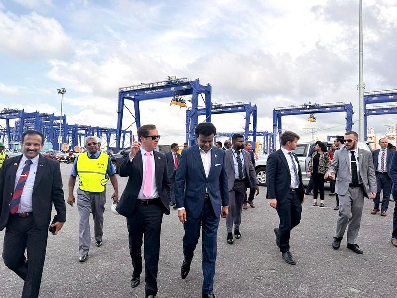 Gor toured the Port of Colombo with the Sri Lanka Ports Authority Chairman. He posted on X that the port is a critical hub connecting South Asia to global markets and that the partnership is helping advance secure trade, support port efficiency, and protect supply chain integrity. The language was commercial, not military. The visit inspected loading cranes and container terminals, not weapons systems.