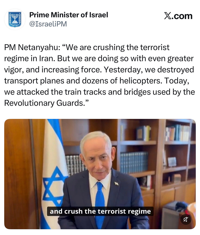 Prime Minister Netanyahu just posted a video confirming that yesterday Israel destroyed transport planes and dozens of helicopters, and today it attacked the train tracks and bridges used by the Revolutionary Guards. Read that alongside the Kharg Island strikes, the Mehrabad Airport hits, and the highway overpasses severed across six provinces, and the pattern becomes unmistakable.