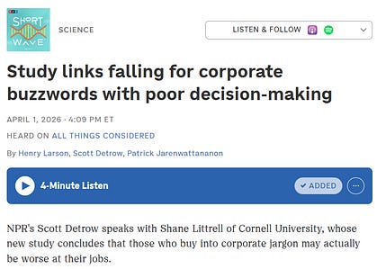 I was on NPR’s "All Things Considered" today talking about my latest research. Given how much I hate the actual sound of my own voice, I thought it would be fun to inflict that aural displeasure on all of you, too (accidentally said "acronysims" instead of "acronyms" but, hey, nobody's perfect 🤷♂️). npr.org/2026/04/01/nx-s…