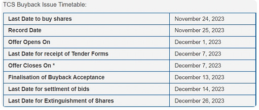 Hi everyone. The TCS buyback window is open now and ends on December 7. Interested investors can tender their shares for buyback. I just tried it on Zerodha via their Console platform. Go to Portfolio > Corporate actions