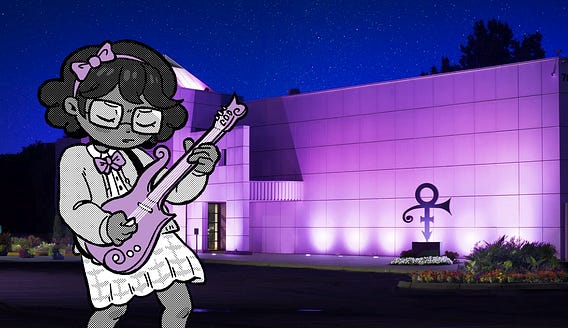 I love commissioning my talented friends to do art for my pieces. My buddy william did a great job drawing me playing one of Prince’s famous “cloud” guitars in front of Paisley Park.