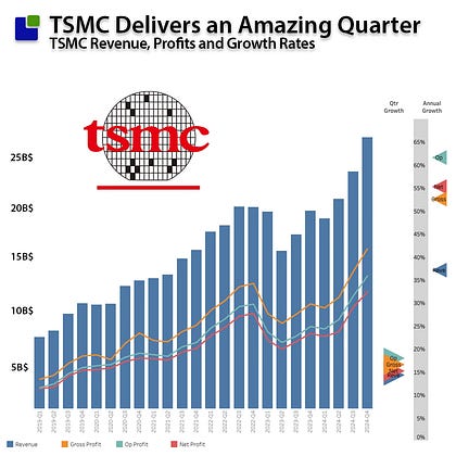 The most important is the company's fantastic profits in Q4-24: Operating profit is up 62% YoY and 18% QoQ, driven by the high demand for TSMC AI customers.