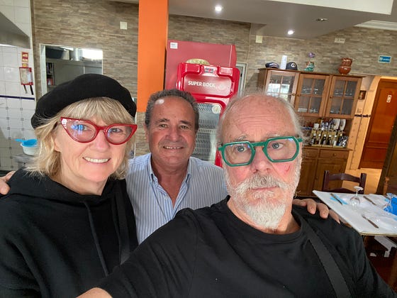 We then called in at another of our haunts, A Petisqueira, for a beer and told them we were leaving: more emotion. The picture below was taken there with the owner. They do great, coat effective lunches with a different special every day.