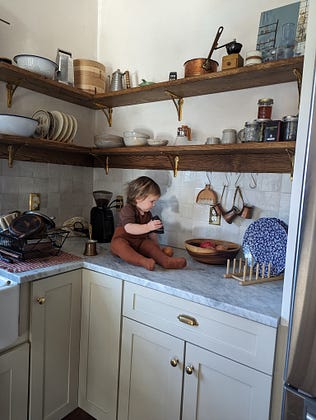 If you look at where the marble counter ends by the fridge you'll see the old white vs the new Stony Ground (I'll paint the fridge part too, though now it's cold out so it's harder because I keep lots of windows open when painting)