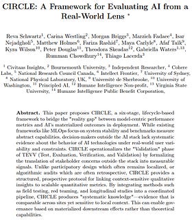 The paper proposed CIRCLE. A six-stage lifecycle for evaluating AI from a real-world perspective. Contextualize. Identify. Represent. Compare. Learn. Extend.