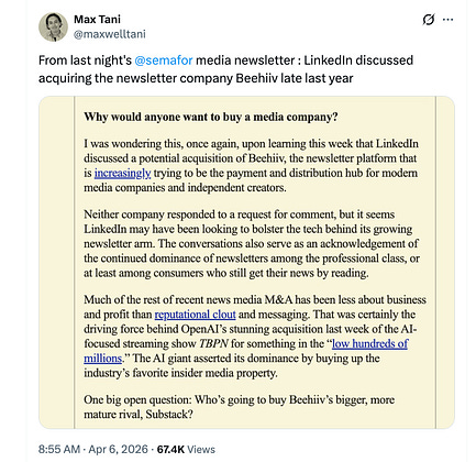 LinkedIn buying Beehiiv to feed its spam and AI slop machine would have made a lot of sense