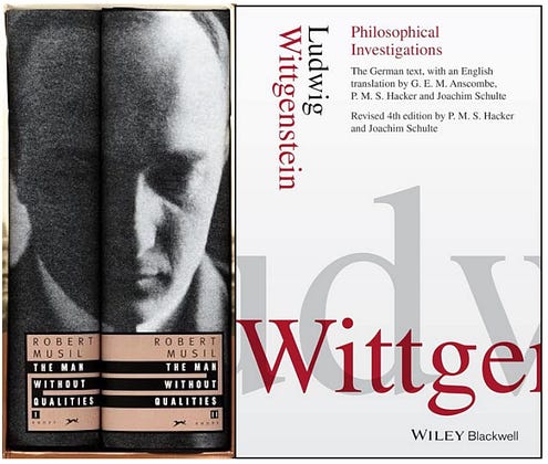 If you’re waiting for my thoughts on The Man Without Qualities, don’t give up. I’ve finished volume one (725 pages) and already started volume two (1,059), but I won’t make you wait until the very end: you should see a post about volume one this weekend. The real problem is that the book is so amazeballs I keep diving deeper than usual. Musil wasn’t only a novelist; he was a trained philosopher who carried out philosophical research through fiction (I’ll say more about that in the reflection). He was writing in the heyday of Logical Positivism, in the midst of the Vienna Circle, and I’m starting to notice strong parallels between his treatment of emotion and Wittgenstein’s treatment of meaning. In fact, this week may see a collision of the Decade Project and the Slo-Mo Philosophy project. Stay tuned…