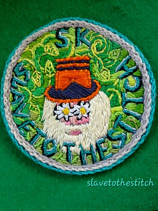 I stitched one of my "Procrastination Patches " to celebrate getting 5,000 followers! π₯³