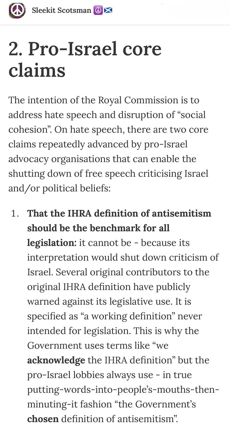 Currently in response to the antisemitism envoy’s plan - triggered by Bondi - the envoy has been asked to define an interpretation of IHRA for Australia …. which I think will be quite predictable.