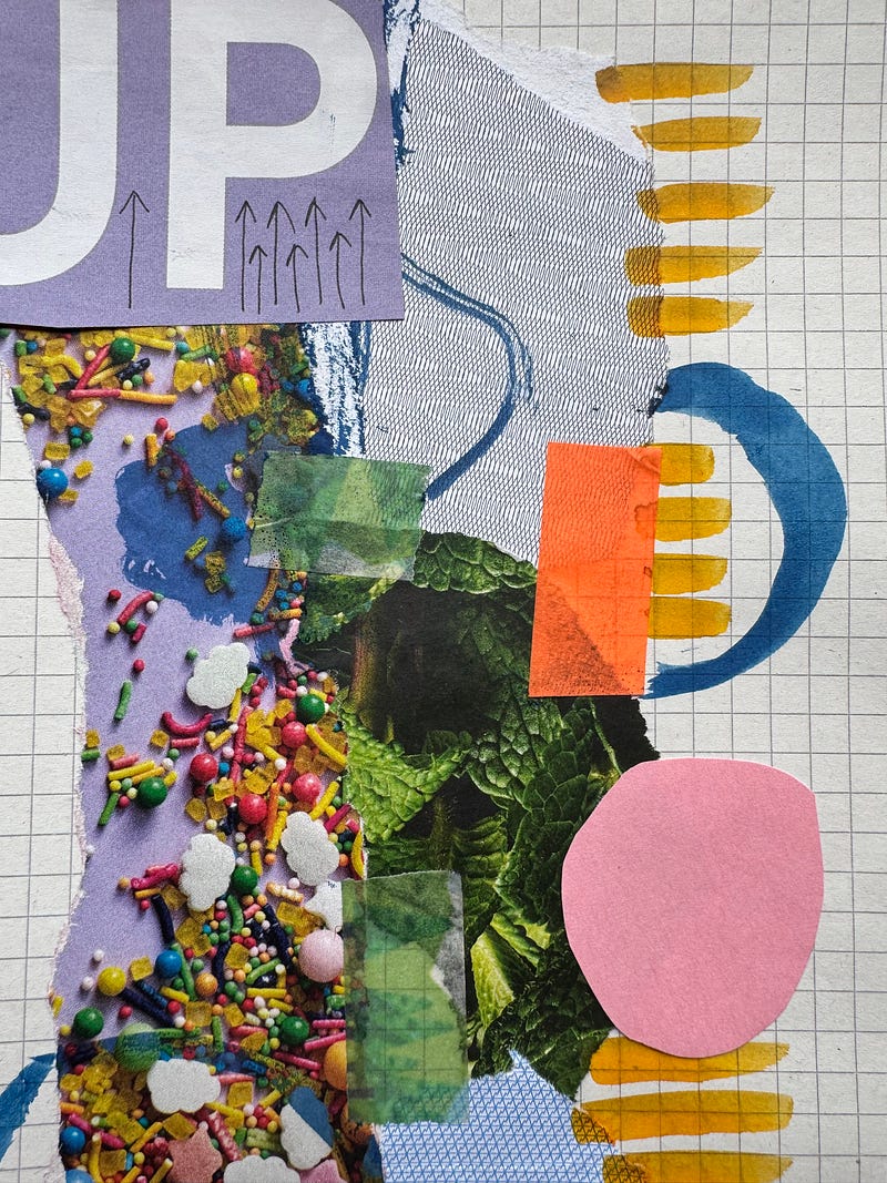Inspired by this morning’s reading I’ve started a new sketchbook - speedy collage & drawing exercises as balance to my usual slower stitching