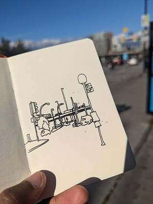 Some shapes under a blue sky while waiting for the bus to take me home.