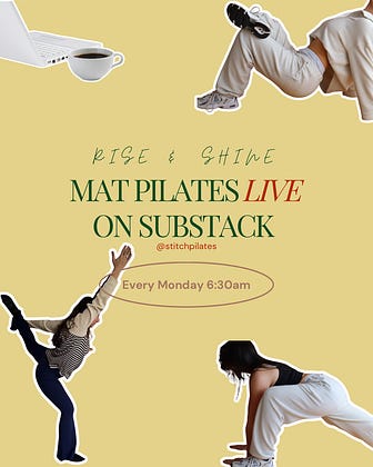 mat pilates every Monday morning (free) 6:30am. It’s only 45 minutes and the perfect way to wake up & start your week 🫖☕️☁️🤎