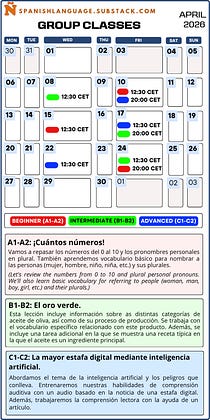 ¡Y también tenemos nuestro plan de clases de español en grupo para abril.