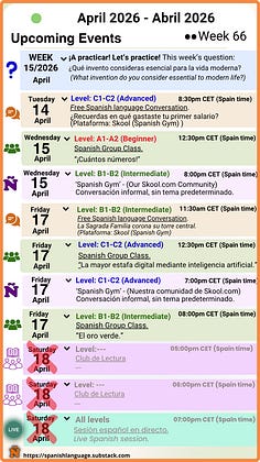 Have a great weekend, everyone! We've already got the schedule of Spanish activities for next week. See you then!
