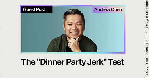 Andrew Chen's “Dinner Party Jerk” Test — Why Founders Need to Pitch Themselves Harder