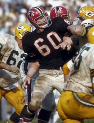 The 1966 Tommy Nobis (#60) expansion season design is one of the best NFL team identities 60 seasons later … but of course Atlanta blows another big lead!