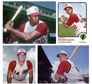 All-time greats, Frank Robinson and Pete Rose, wore the Reds sleeveless vests during the early years of their remarkable legendary careers.