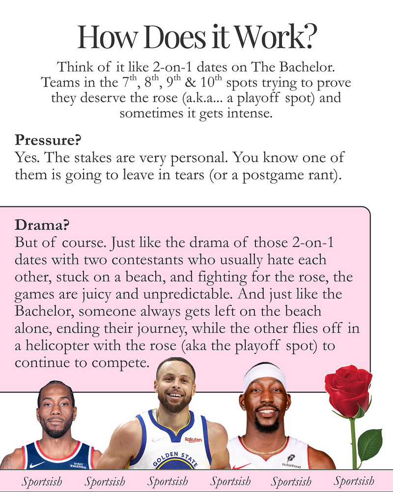 The NBA Regular Season is over and the play-in tournament has arrived. In Sportsish terms, it's basically like a sporty version of those problematic 2-on-1 dates a la the Bachelor.
