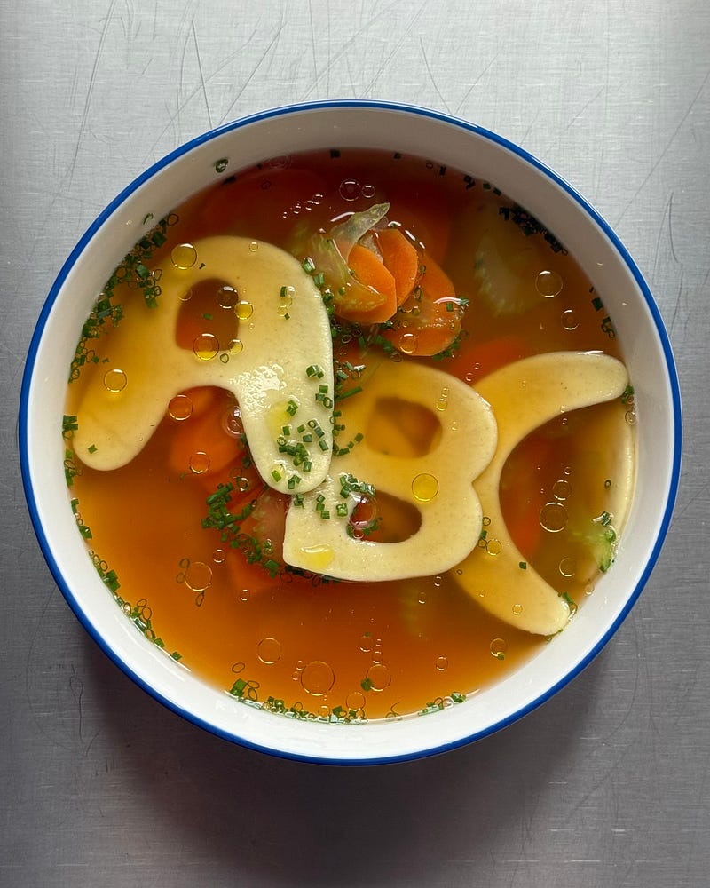 First foray into the world of pasta starting strong with enormous alphabet soup 🔤