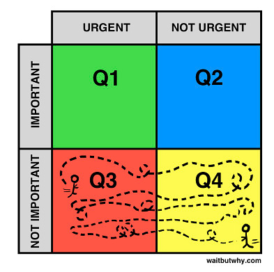 “Doing a bunch of Q3 shit (meetings, emails, errands, bills, other daily checklist items) feels productive but it's really just a sneaky form of procrastination from your important work (which usually lives in Q2 with no deadlines).”