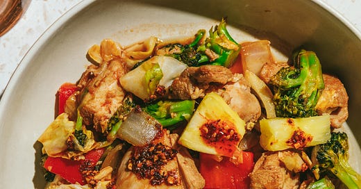 A chicken and cabbage stir-fry inspired by Hawaiian huli-huli chicken, all the reasons why we should eat more cabbage, and the second meal plan in my Five Dinners for $100 series.
