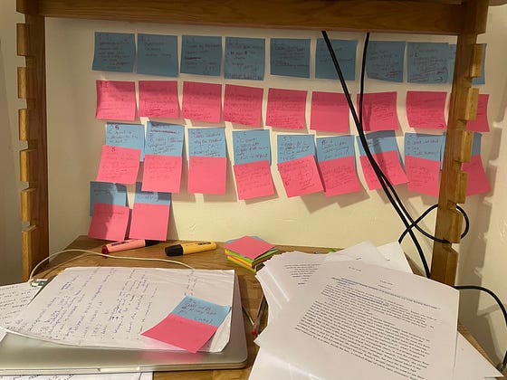 95% of being a real writer is having a wall full of your novel’s scenes written on post-its