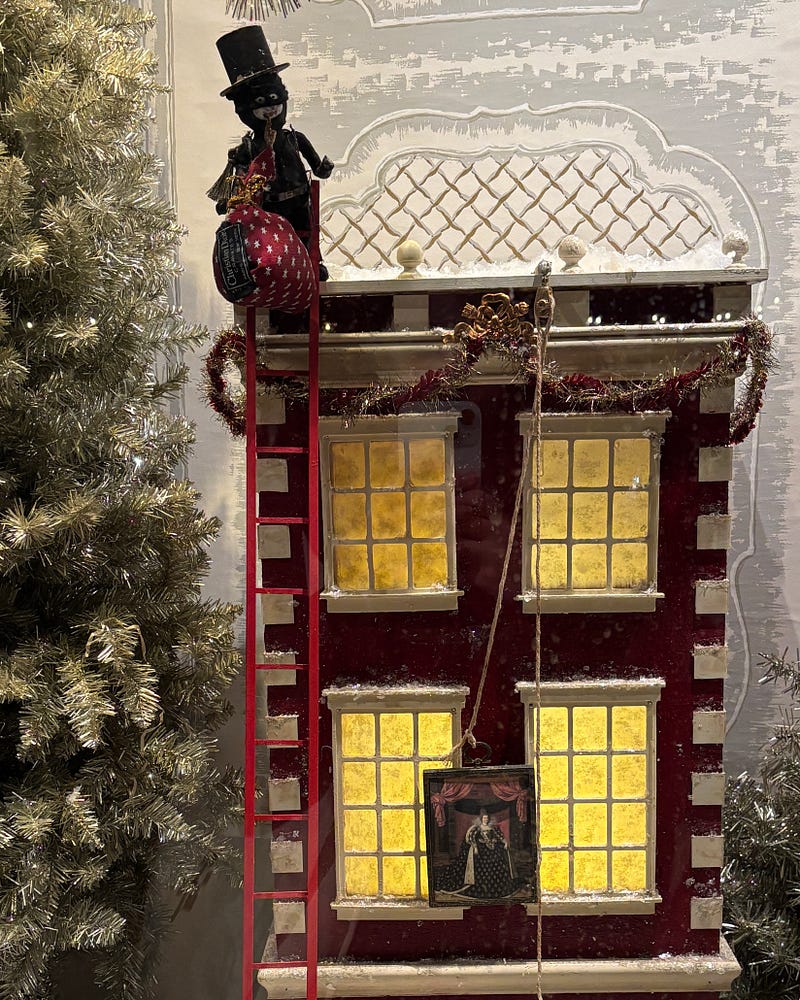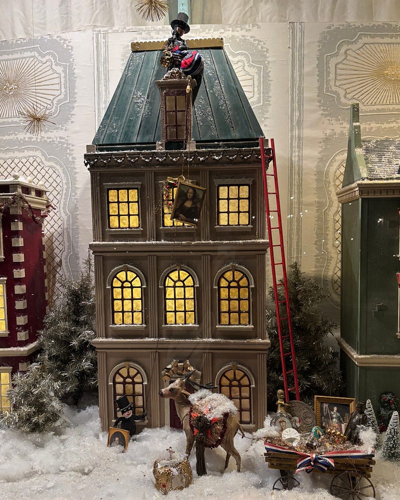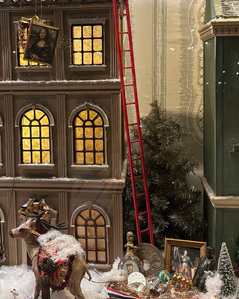 obsessed with this louvre heist-themed window display for christmas 🖼️ so clever