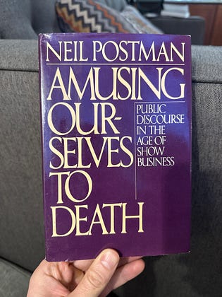 As a thought experiment, I’ve been changing the references in a few passages from Neil Postman’s Amusing Ourselves to Death (1985). What do you think?