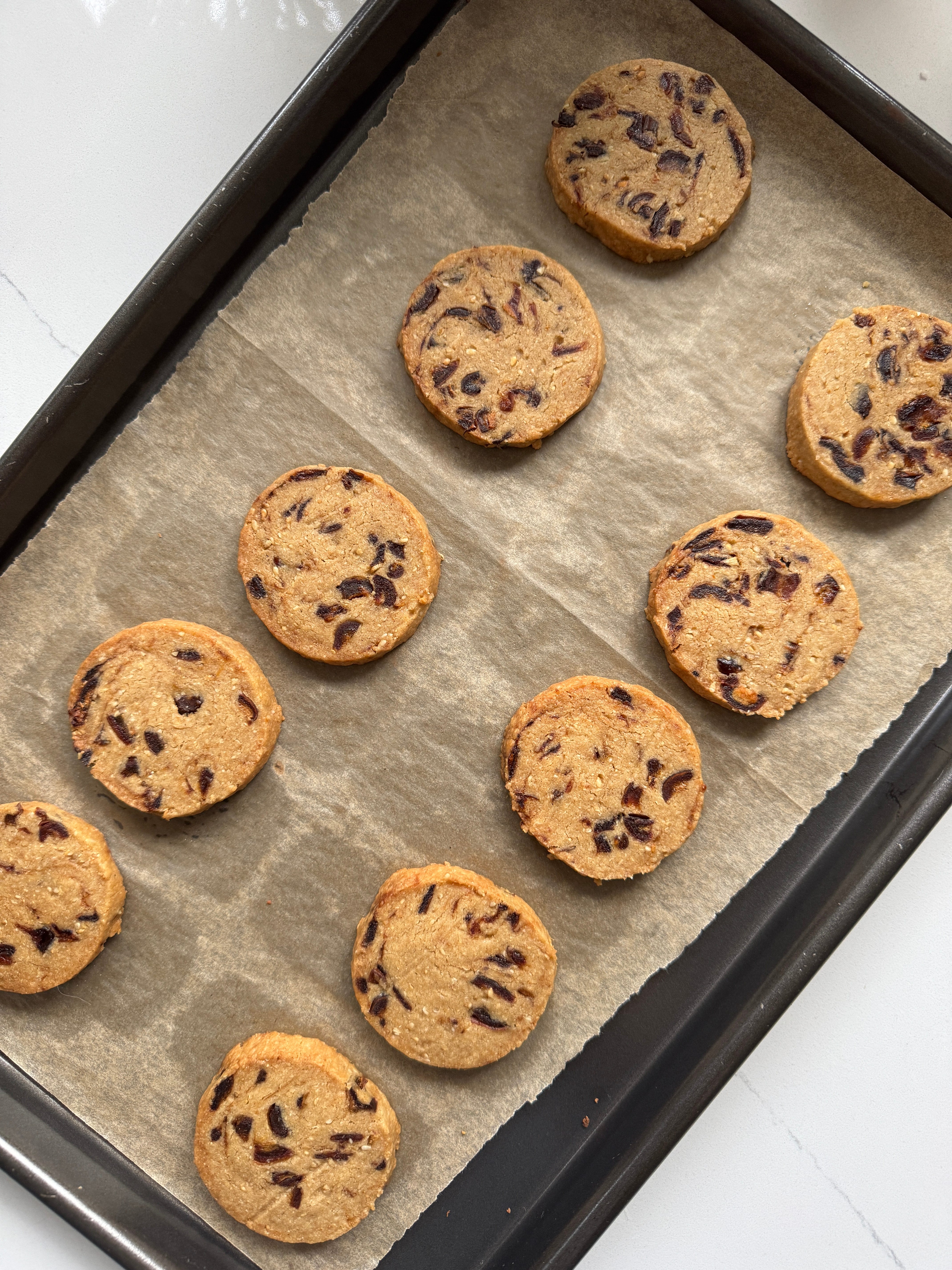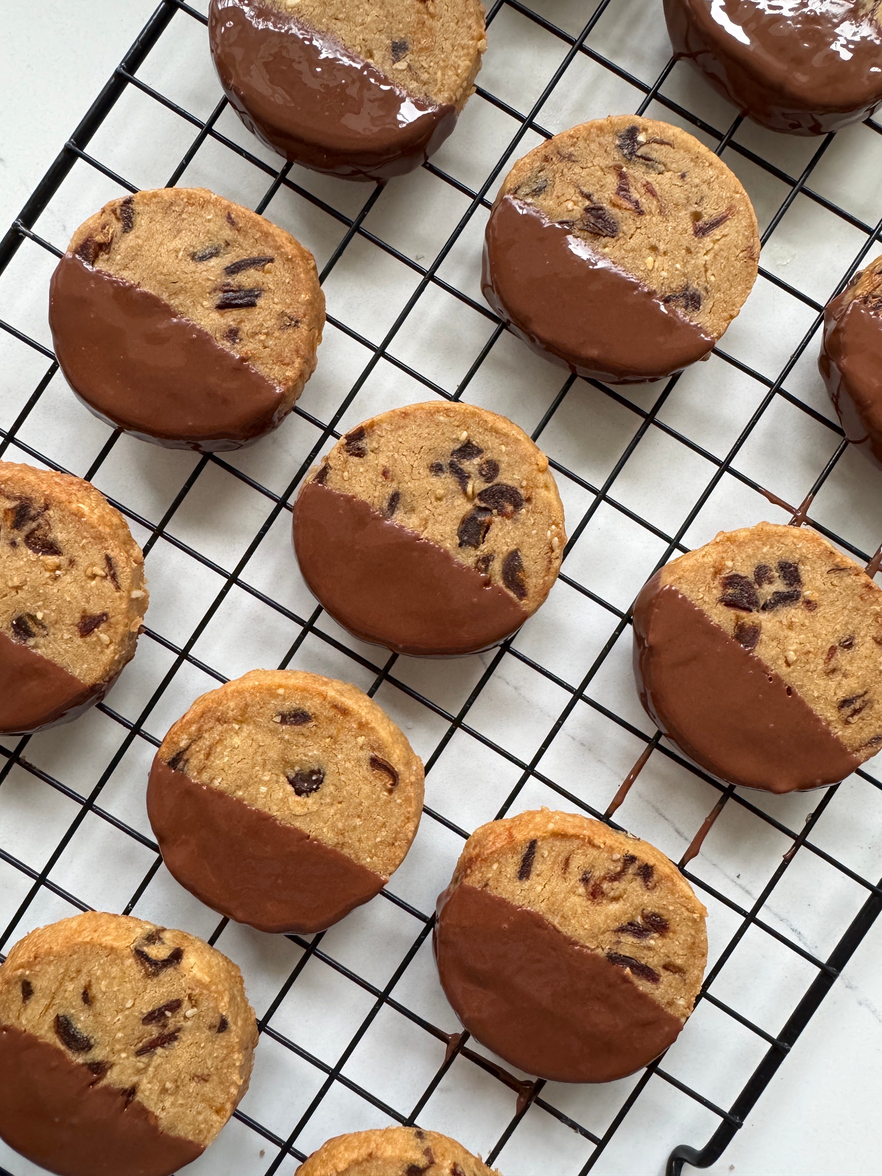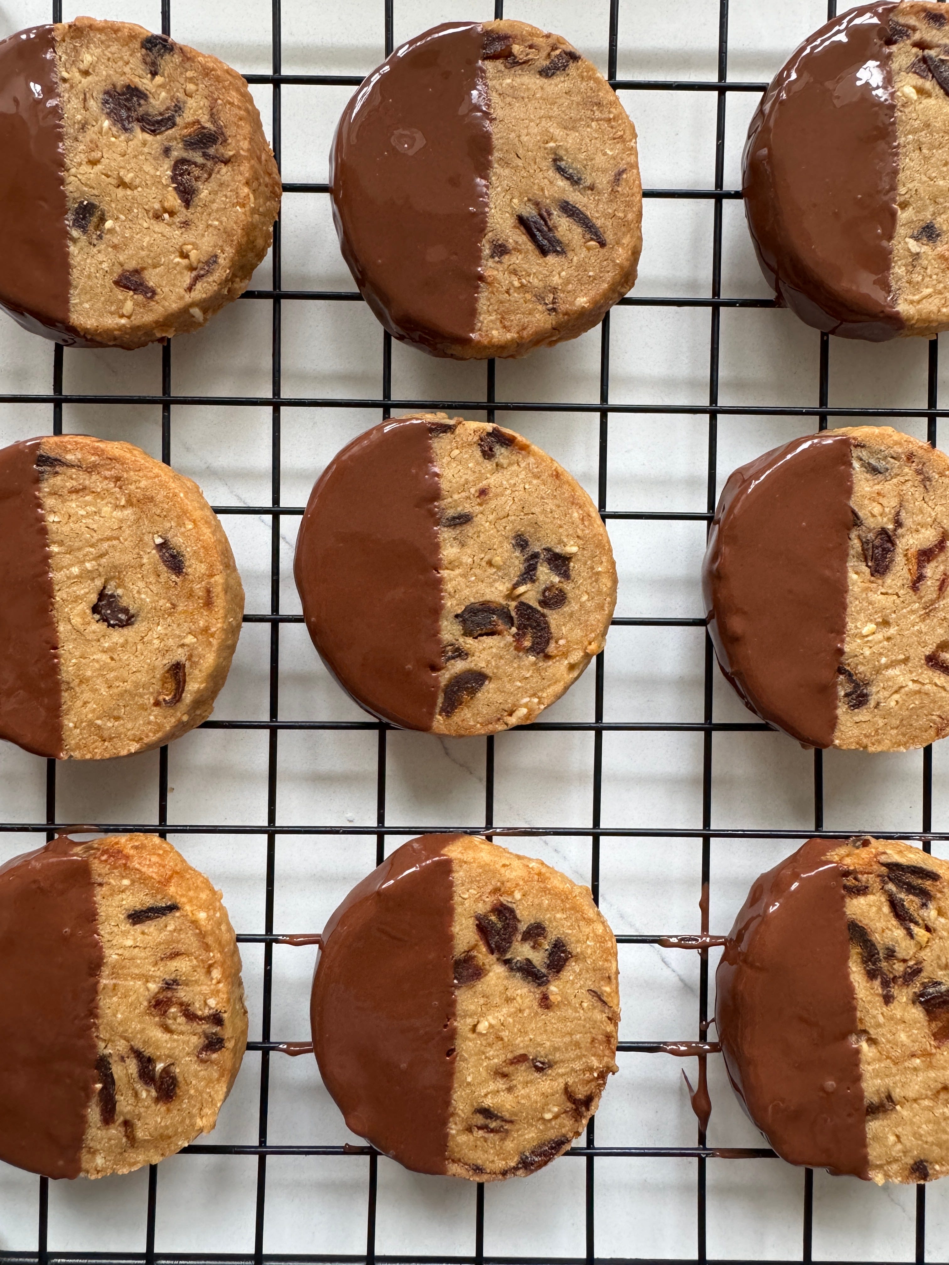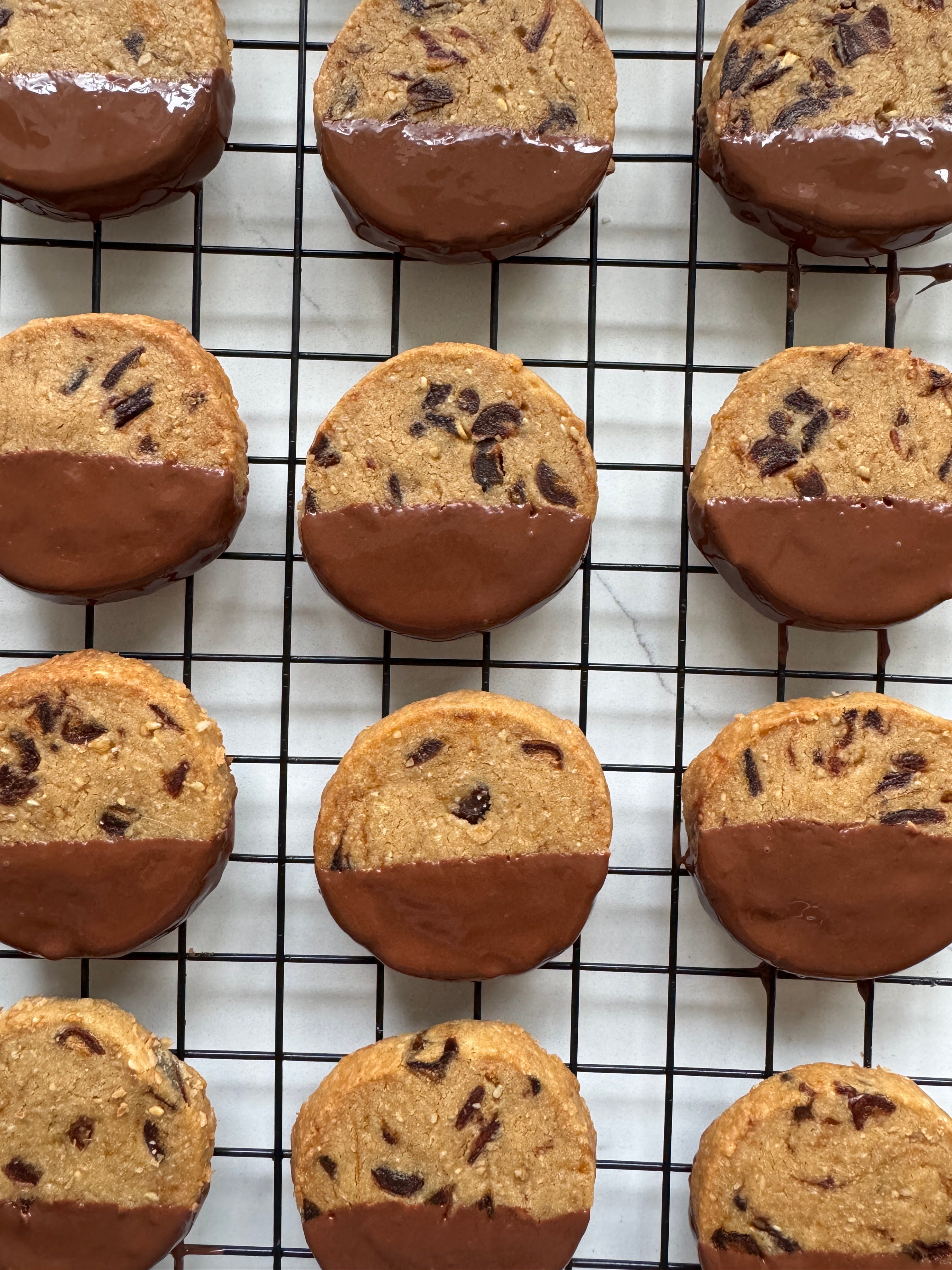Sesame, date, shortbread (with an optional dark chocolate dip). Addictive. 😋