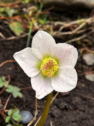 Every year, a white flower comes up in early spring.