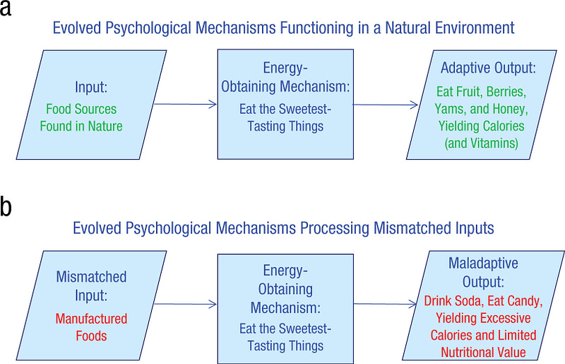 Another crucial concept in the evolutionary psychologist’s arsenal is evolutionary mismatch. The mismatch in question is that between the environment in which we spent most of our evolutionary history and the environment we inhabit today.