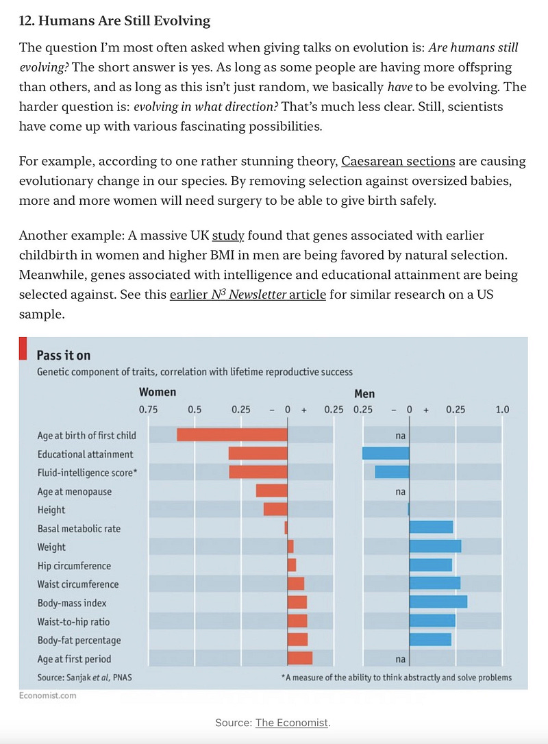 "According to one rather stunning theory, Caesarean sections are causing evolutionary change in our species. By removing selection against oversized babies, more and more women will need surgery to be able to give birth safely."