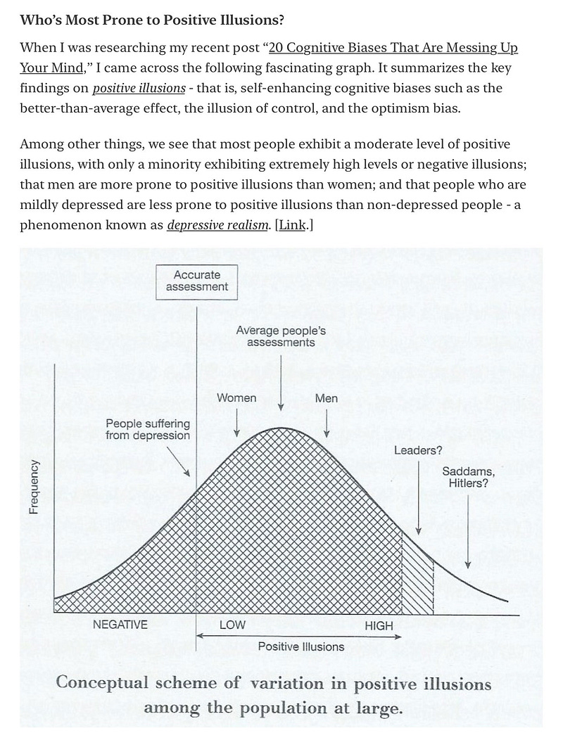 Who's most prone to positive illusions - that is, self-enhancing cognitive biases such as the better-than-average effect, the illusion of control, and the optimism bias?