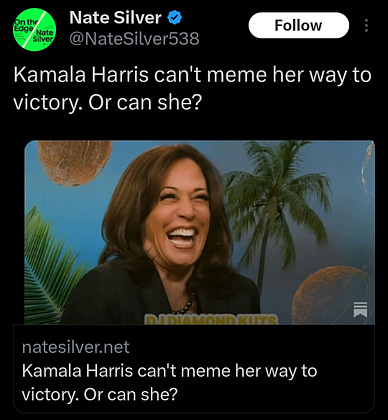 People are saying this indicates that Silver may be just as value-free as Adams is. So I’ve heard.