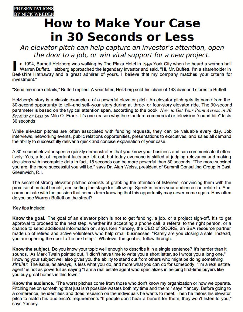 How to Make Your Case in 30 Seconds or Less